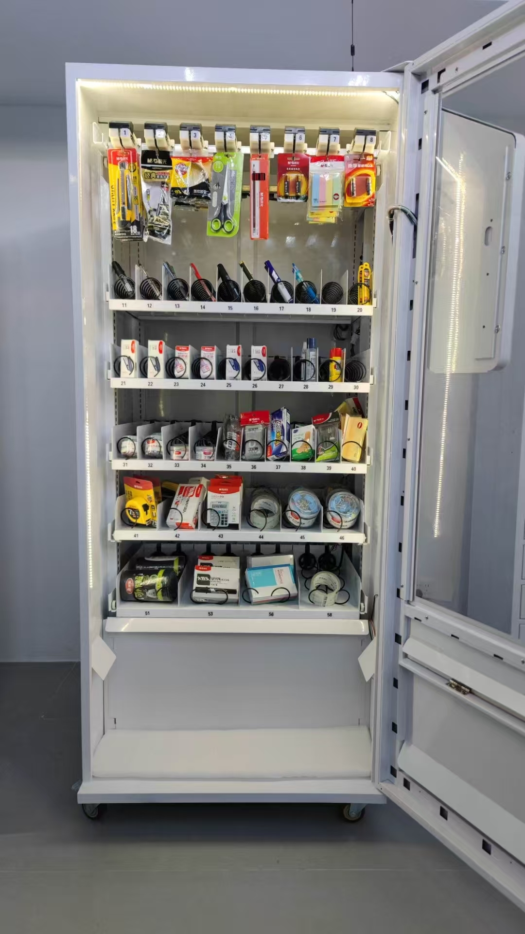راه حل موجودی لوازم اداری (TVM-1900) با هدف ارائه دسترسی 24/7 لوازم اداری، سازگاری تیم شما با حالت های جدید کار انعطاف پذیر و افزایش کارایی است.راه حل چند دسته ای که برای لوازم اداری مختلف از کوچک تا بزرگ، در بسته های مختلف مناسب است.